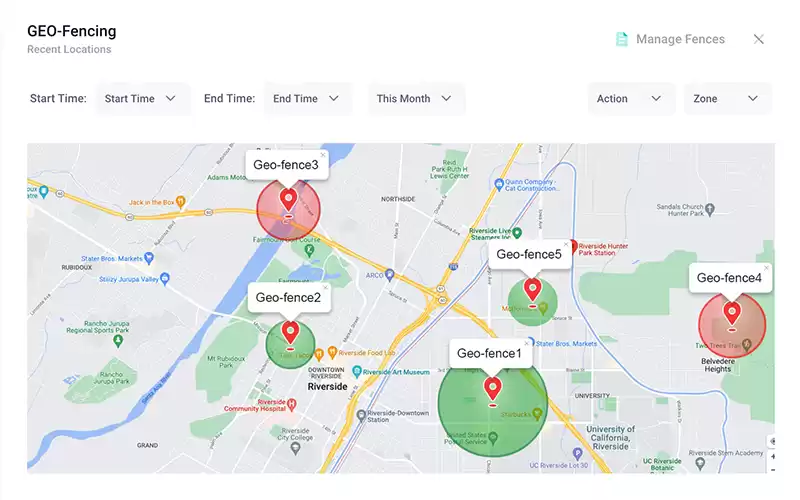 Create geo-fences to monitor kids movements and protect them from leaving a safe place or entering a dangerous place.