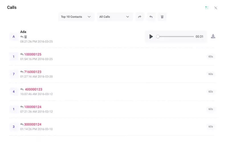 Log incoming and outgoing calls. Record calls with the built-in call recorder.